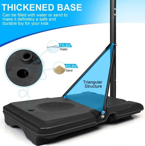 - Stable base: The mobile base can be filled with water or sand to ensure your safety and stability when shooting the basket. Two built-in wheels provide convenience for transportation and movement.